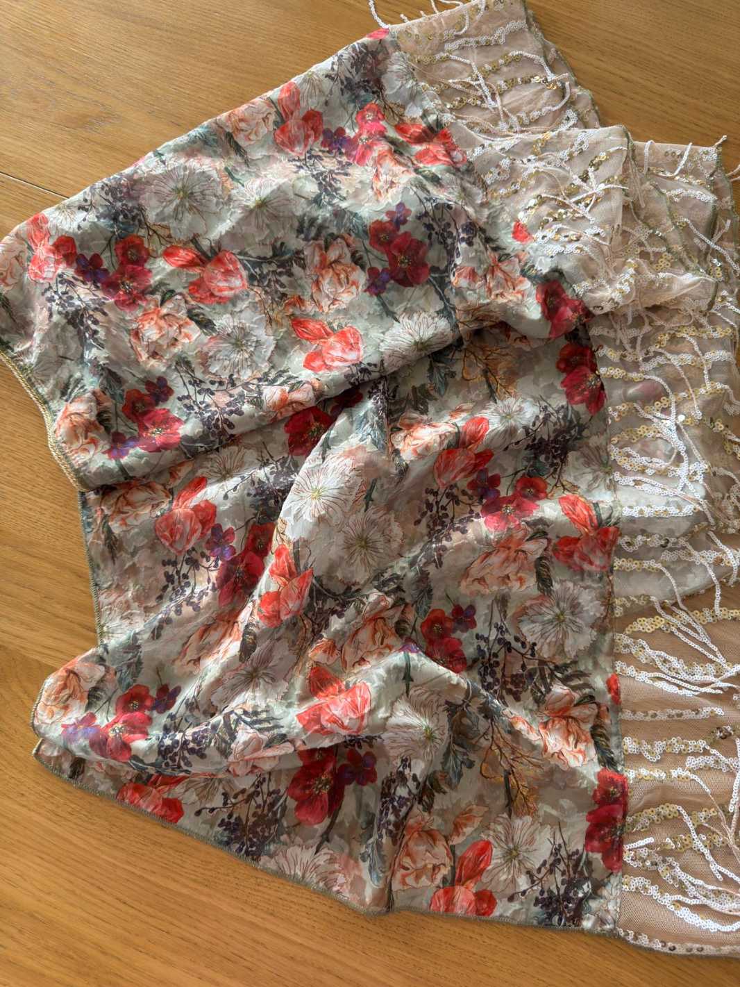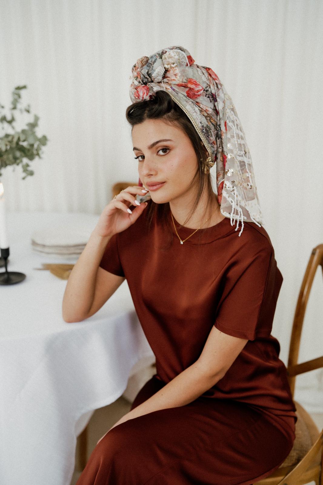 שילוב של הדפס ייחודי, בד פרנזים לבן וזהב מיוחד ומאיר וסרט קישוט זהב מיוחד.