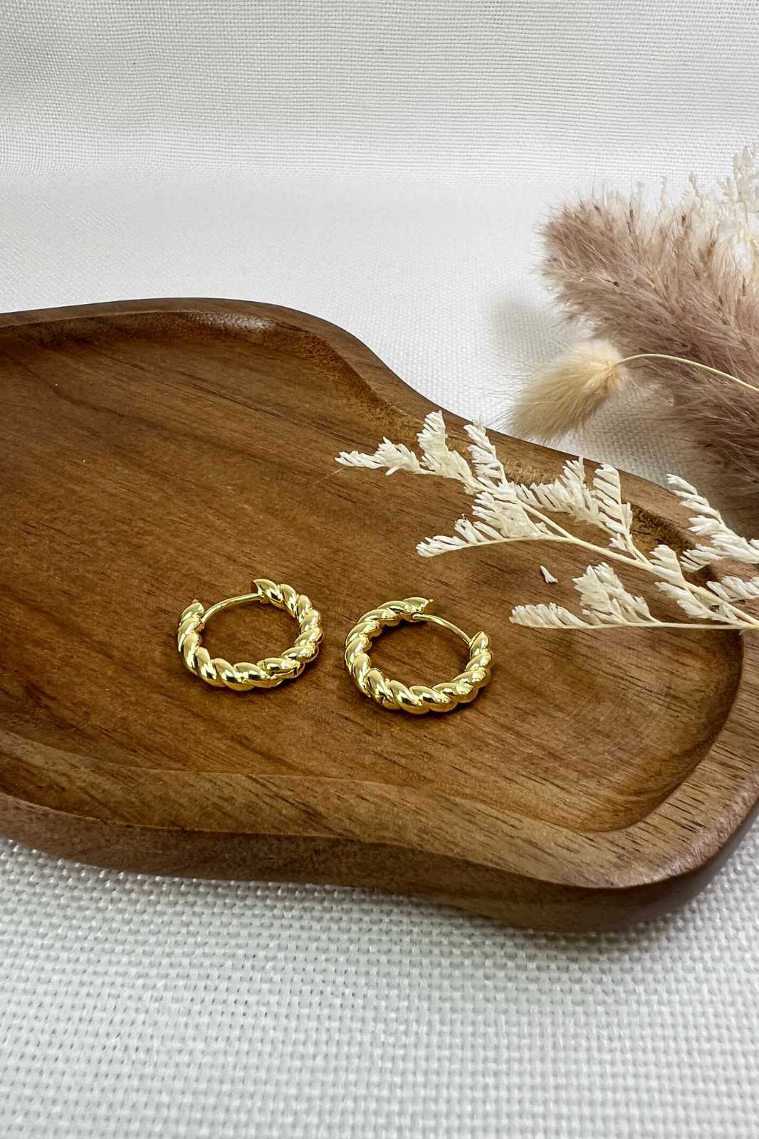 עגילי חישוק עדינים בטקסטורה קלועה.