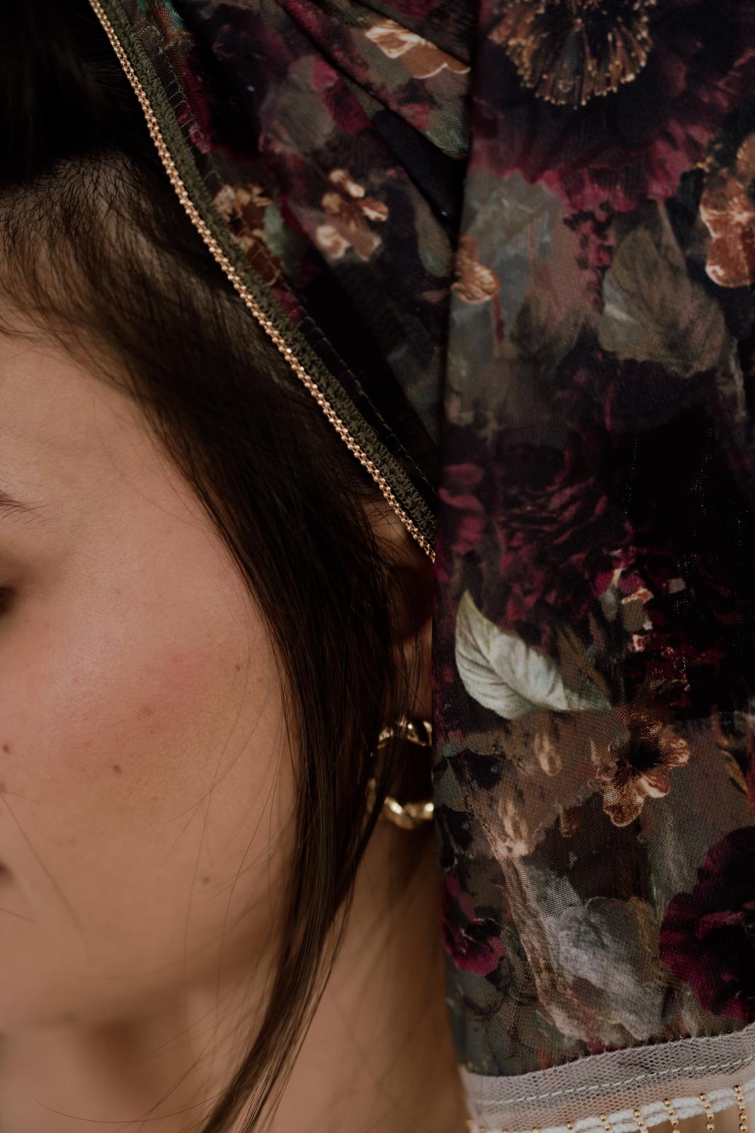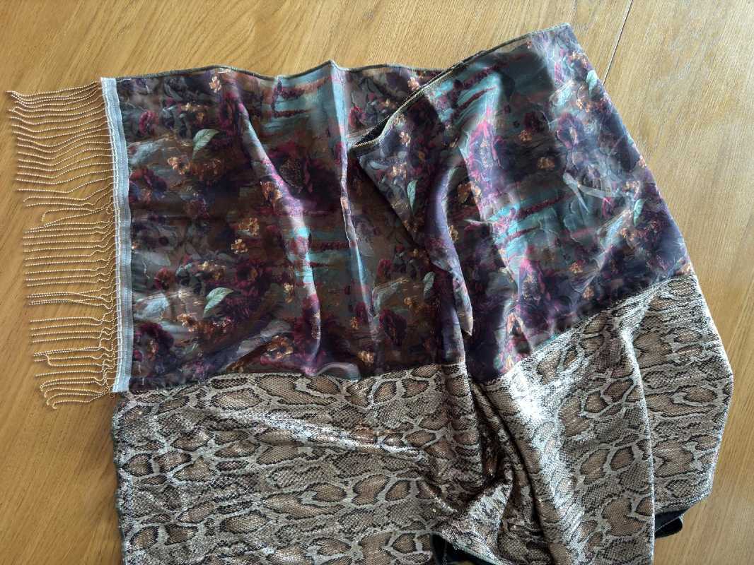 הדפס יפייפיה, אלגנטי ומרשים יחד עם בד פייטים עדין בדוגמה מנוחשת.